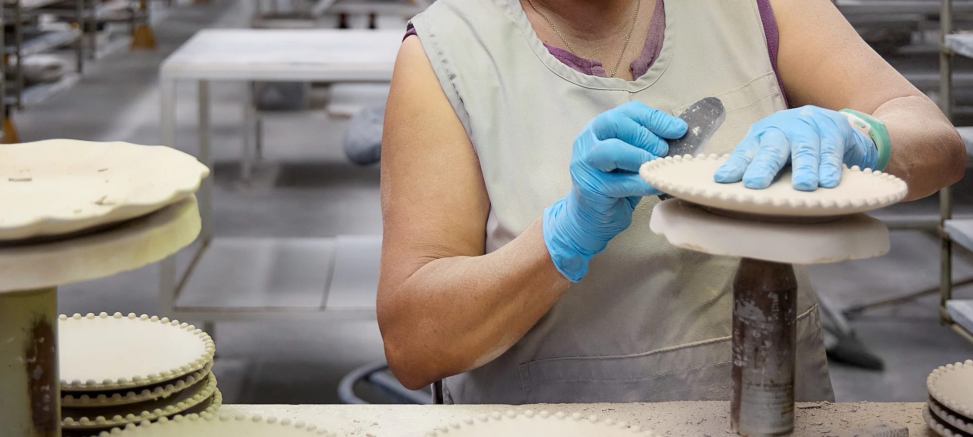 Muitas mãos tocam em cada uma das nossas peças de cerâmica – embora as nossas fábricas estejam equipadas com tecnologia de ponta, o processo manual continua a ser predominante.