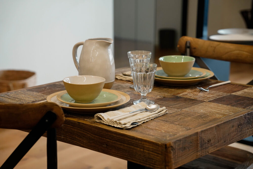 The organic nuances and natural finishes strengthen its handmade aesthetic, making each piece feel full of personality.